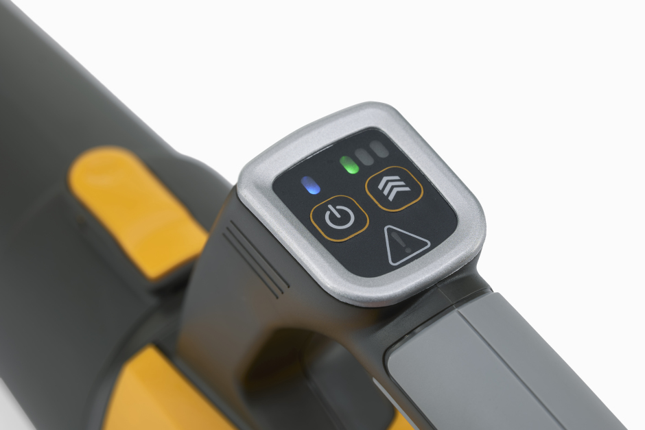 Intuicyjny panel przycisków na uchwycie umożliwia wybór między trzema różnymi ustawieniami prędkości przepływu powietrza.
