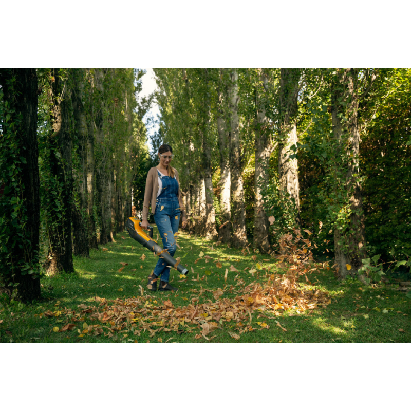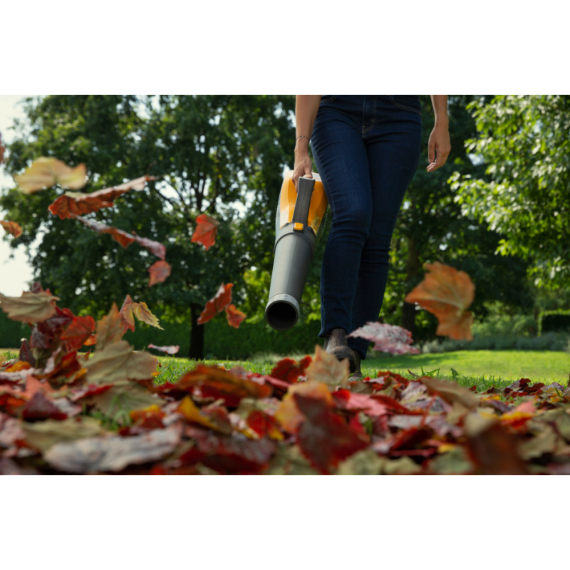 Bezszczotkowy silnik (650 W) generuje dużą prędkość wydmuchiwanego powietrza - aż do 55 m/s. Dzięki temu dmuchawa łatwo usuwa zabrudzenia z ogrodu, patio czy podjazdu.