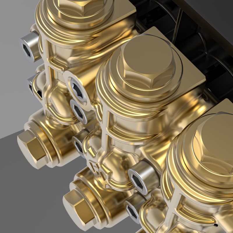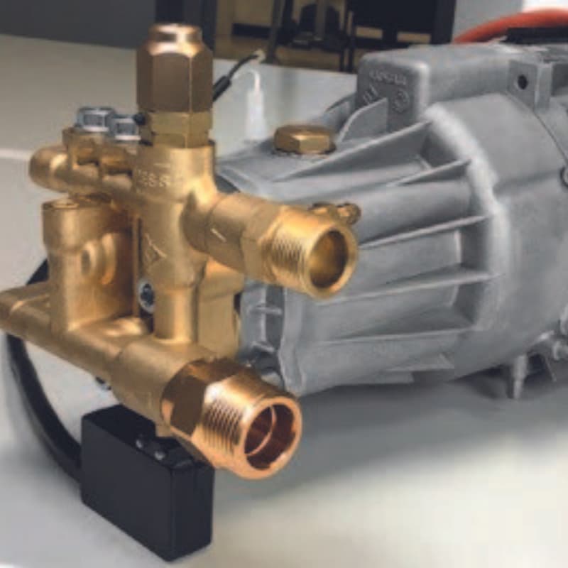 - Mosiężna głowica pompy z trzema tłokami pokrytymi ceramiką, co zwiększa żywotność urządzenia.
