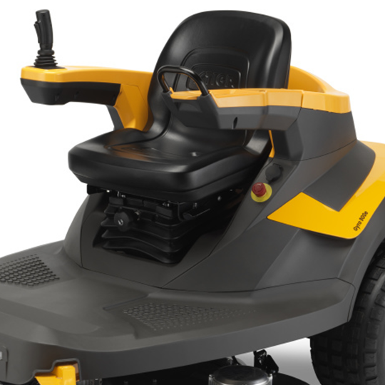 Stiga Gyro 900e zapewnia niesamowity komfort podczas pracy dzięki wysokiej jakości siedzisku z wysokim oparciem, niezakłóconemu dostępowi do wszystkich funkcji i szerokiemu podnóżkowi. Podwójny równoległy układ zawieszenia, który pochłania drgania na wyboistym podłożu, czyni jazdę bardziej komfortową. Wszystkie komendy elektryczne są w zasięgu ręki, więc zawsze masz pełną kontrolę.