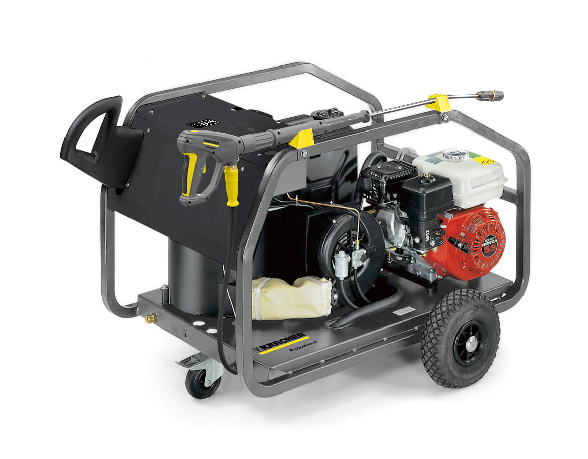 Myjka HD 8/20 DE to urządzenie spalinowe wyposażone w wytrzymały silnik wysokoprężny napędzany olejem napędowym. Cały osprzęt myjki chroni solidna stalowa rama. Dodatkowo silnik automatycznie przestaje pracować, gdy poziom oleju jest zbyt niski.