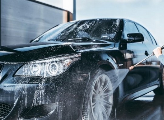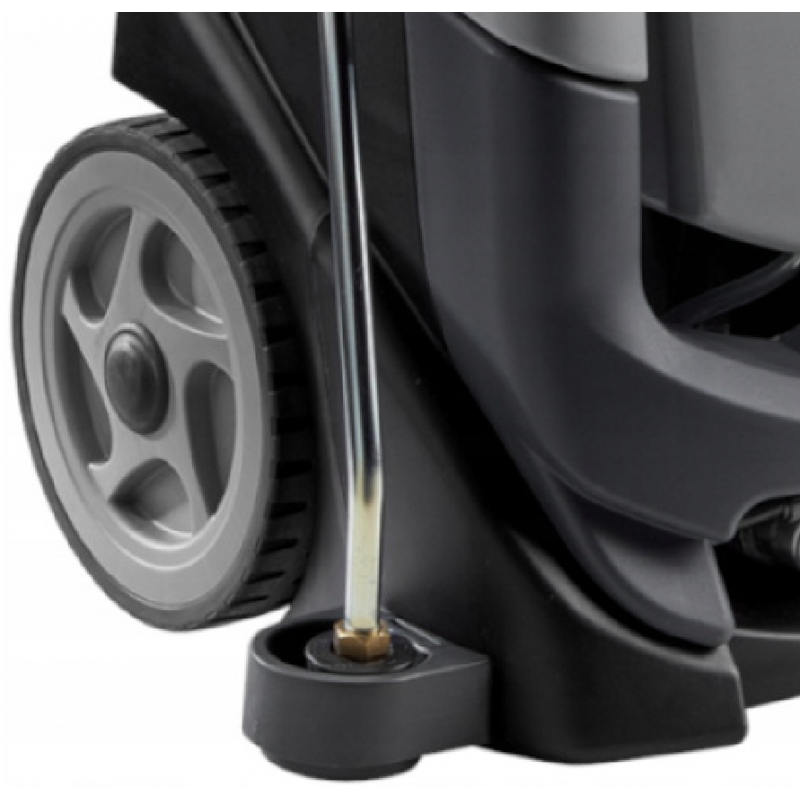 - Myjka posiada duże koła transportowe które ułatwiają przemieszczanie urządzenia.