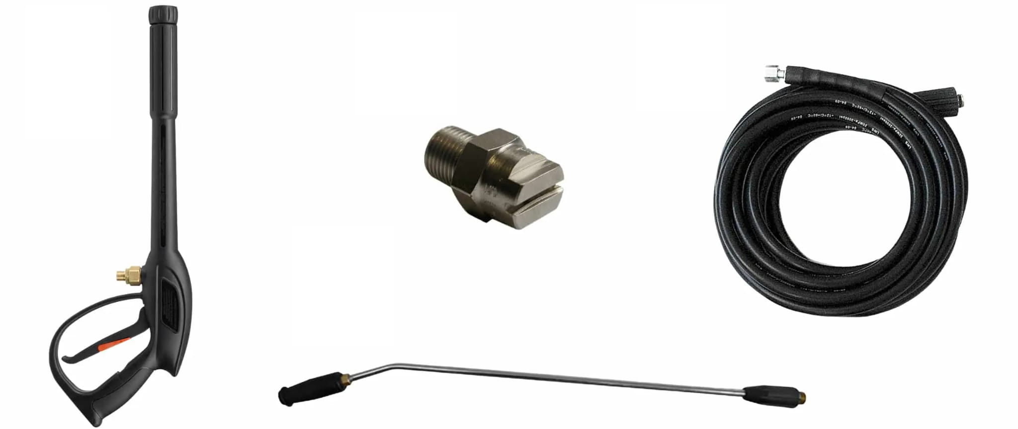 - Długi wąż wysokociśnieniowy (10 m) - zwiększa zasięg pracy i umożliwia dotarcie do trudno dostępnych miejsc