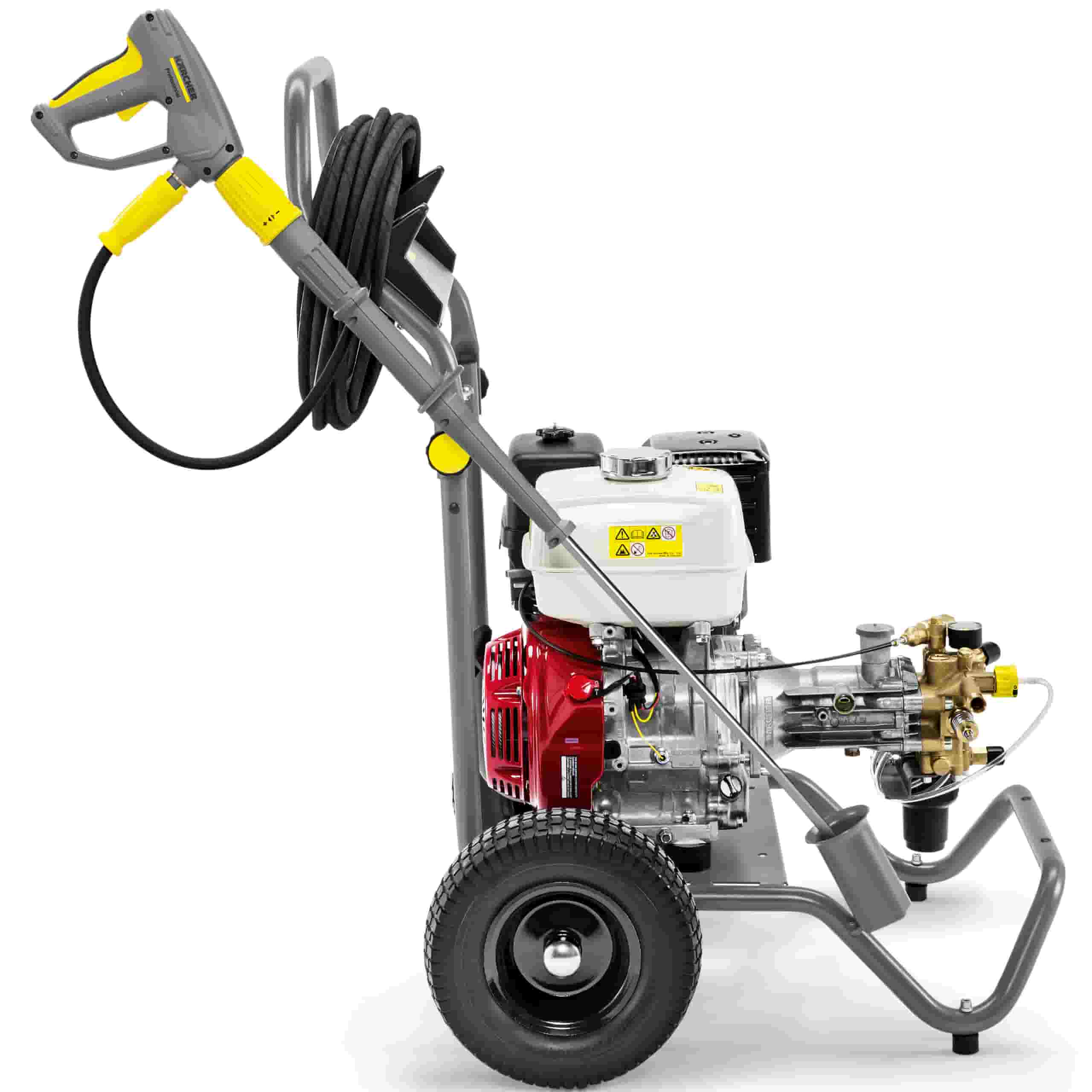 HD 9/23 G Karcher - to profesjonalne urządzenie ciśnieniowe, przystosowane do pracy w miejscach, gdzie nie ma dostępu do energii elektrycznej. Urządzenie może również zasysać wodę z zewnętrznych źródeł, co pozwala na pracę w trudnych warunkach. Wyposażone zostało w wytrzymały i wydajny silnik spalinowy HONDA GX 390!