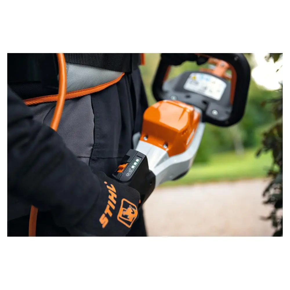 Nożyce Stihl HSA 130.0 R oferują wyjątkową wydajność dzięki zastosowaniu nowoczesnej technologii litowo-jonowej. Czas pracy na jednym ładowaniu zależy od użytego akumulatora, sięgając nawet do 985 minut z akumulatorem AR 3000 L. Dzięki temu urządzenie jest idealne do długotrwałych prac w ogrodzie.