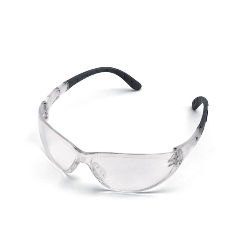Bezbarwne okulary ochronne, które nie zachodzą parą od wewnątrz, a zewnętrzna powierzchnia jest odporna na zadrapania. Wyposażone w boczną osłonę i miękkie końcówki, gwarantują 100% ochrony przed promieniowaniem UV. Spełniają normę EN 166. Ciężar ok. 26,0 g.