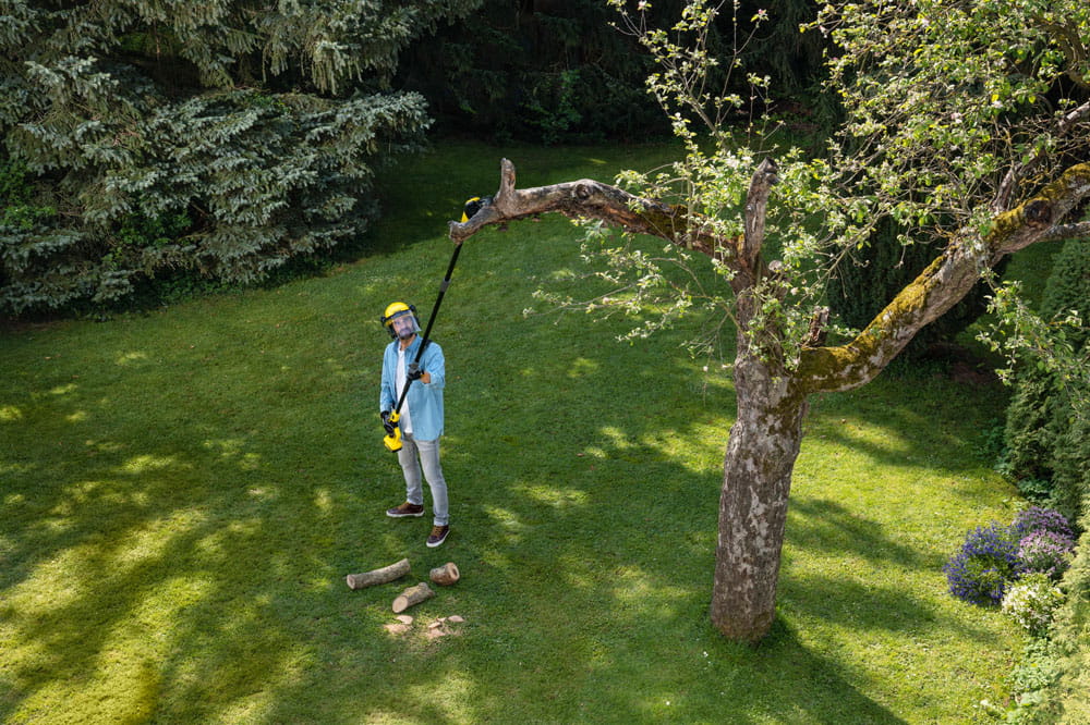 Akumulatorowa piła na wysięgniku PSW 18-20 łatwo dosięga i ścina gałęzie na wysokości nawet 4 metrów. Zapewnia użytkownikowi bezpieczeństwo i wygodę podczas pielęgnacji drzew.