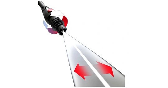 Dysza płaska jest Idealna do spłukiwania błota i osadów z elewacji, ścian czy kostki brukowej oraz czyszczenia mniejszych obszarów wokół domu i w ogrodzie.