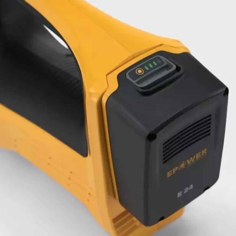 Dmuchawa wyposażona w akumulator 20 V 4 Ah jest mocna i cichsza od dmuchawy spalinowej zapewniając czas pracy wynoszący 40 min. przy normalnej prędkości i 20 min. przy zwiększonej.