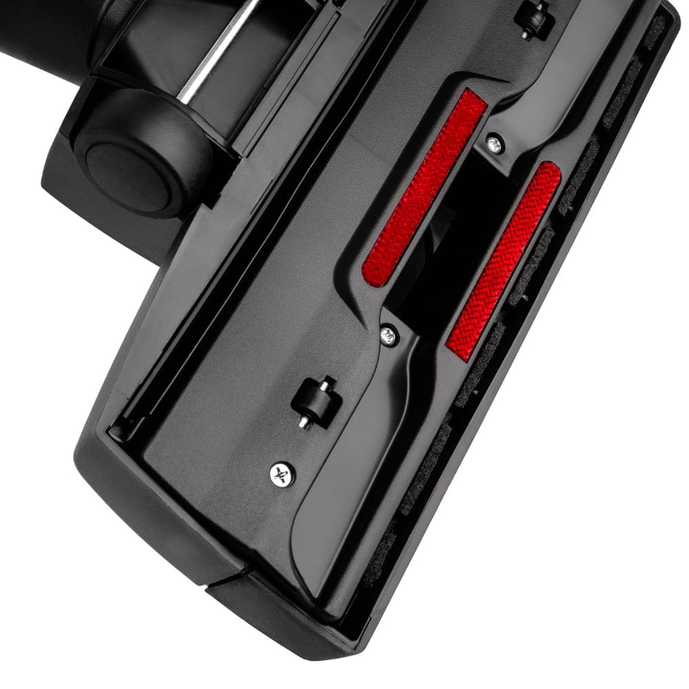 Praktyczne paski elektrostatyczne efektywnie zbierają sierść i włosy, co docenią osoby posiadające zwierzęta. Gumowane kółka oraz ruchomy system mocowania zapewniają płynne prowadzenie ssawki po każdej powierzchni. Gumowy zgarniacz dodatkowo pomaga w zbieraniu drobnych zanieczyszczeń.