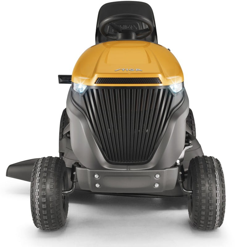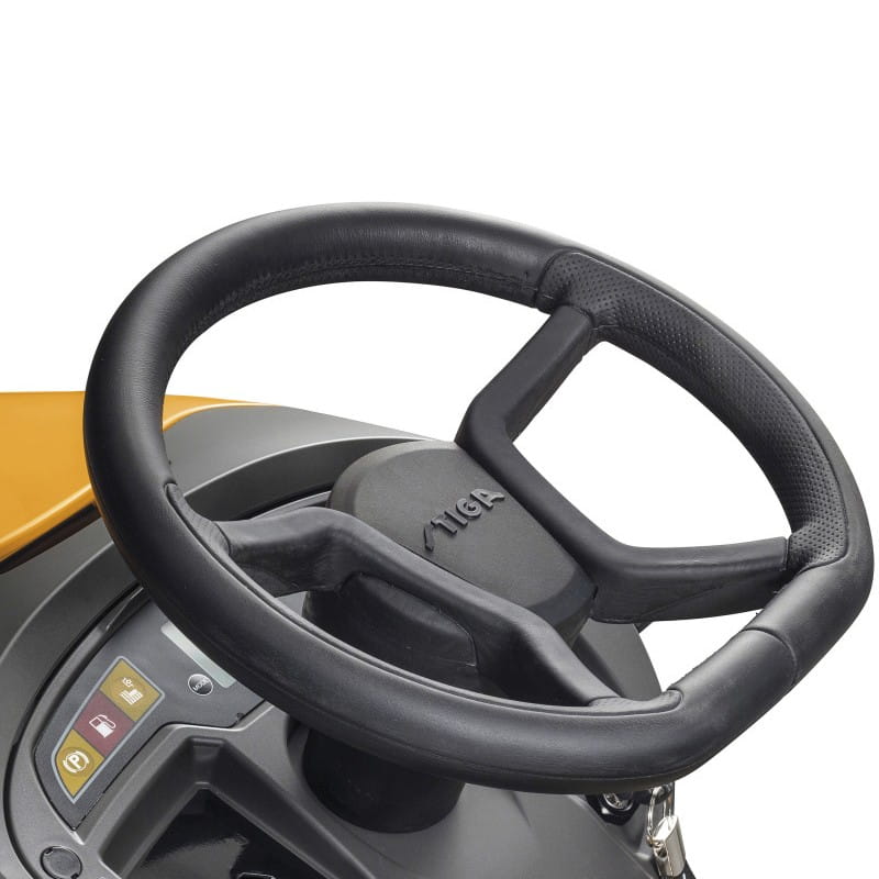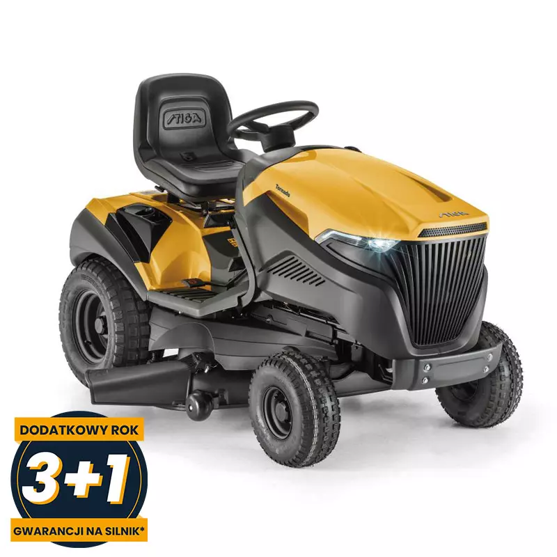 Stiga Tornado 7108 W to komfortowy traktor zasilany silnikiem spalinowym ST 650 Twin o mocy netto 11,20 kW przy 2700 obr./min. Traktor został wyposażony w hydrostatyczną skrzynie biegów. Jest to idealny wybór do koszenia trawnika o powierzchni do 7000m².